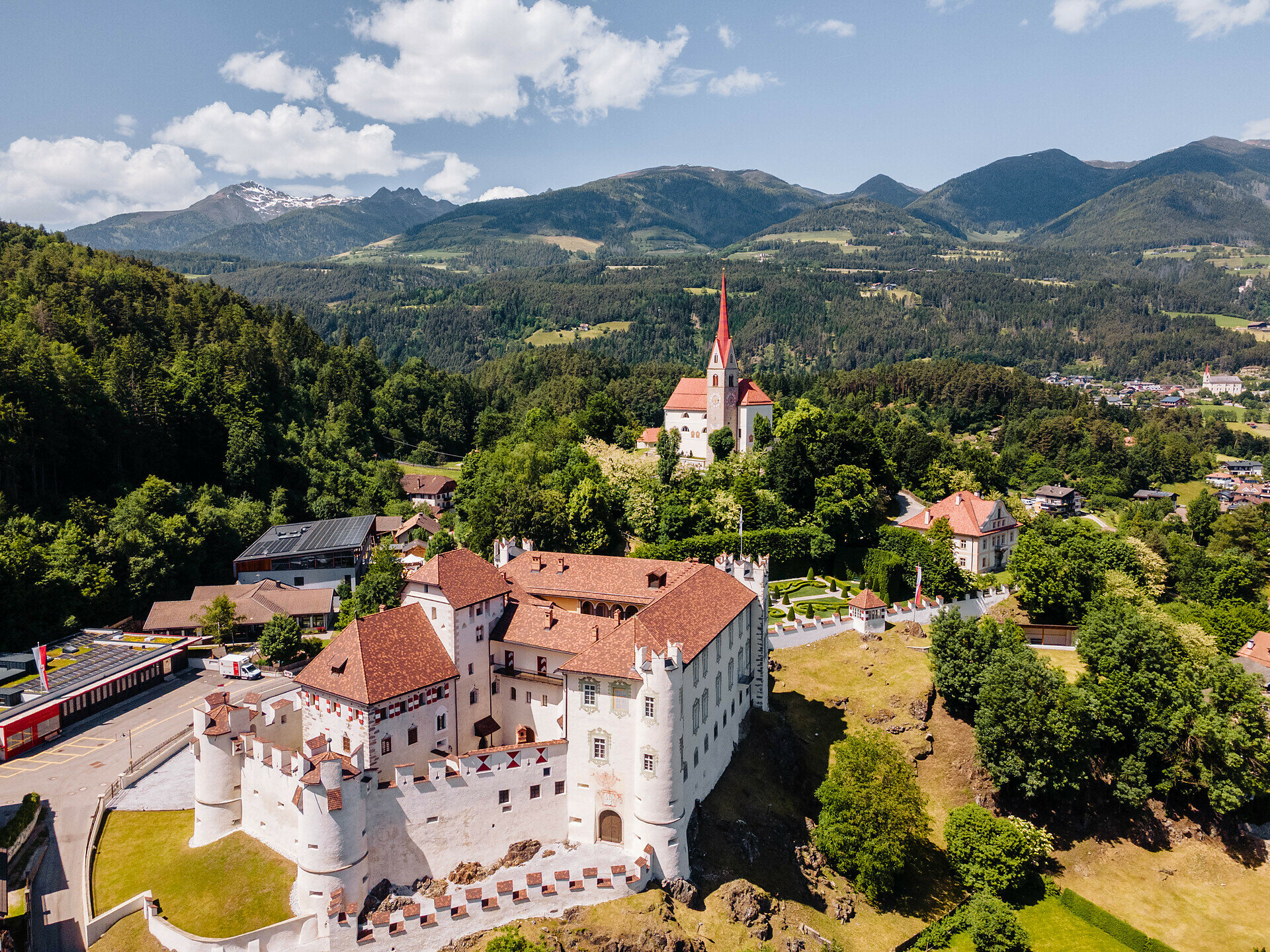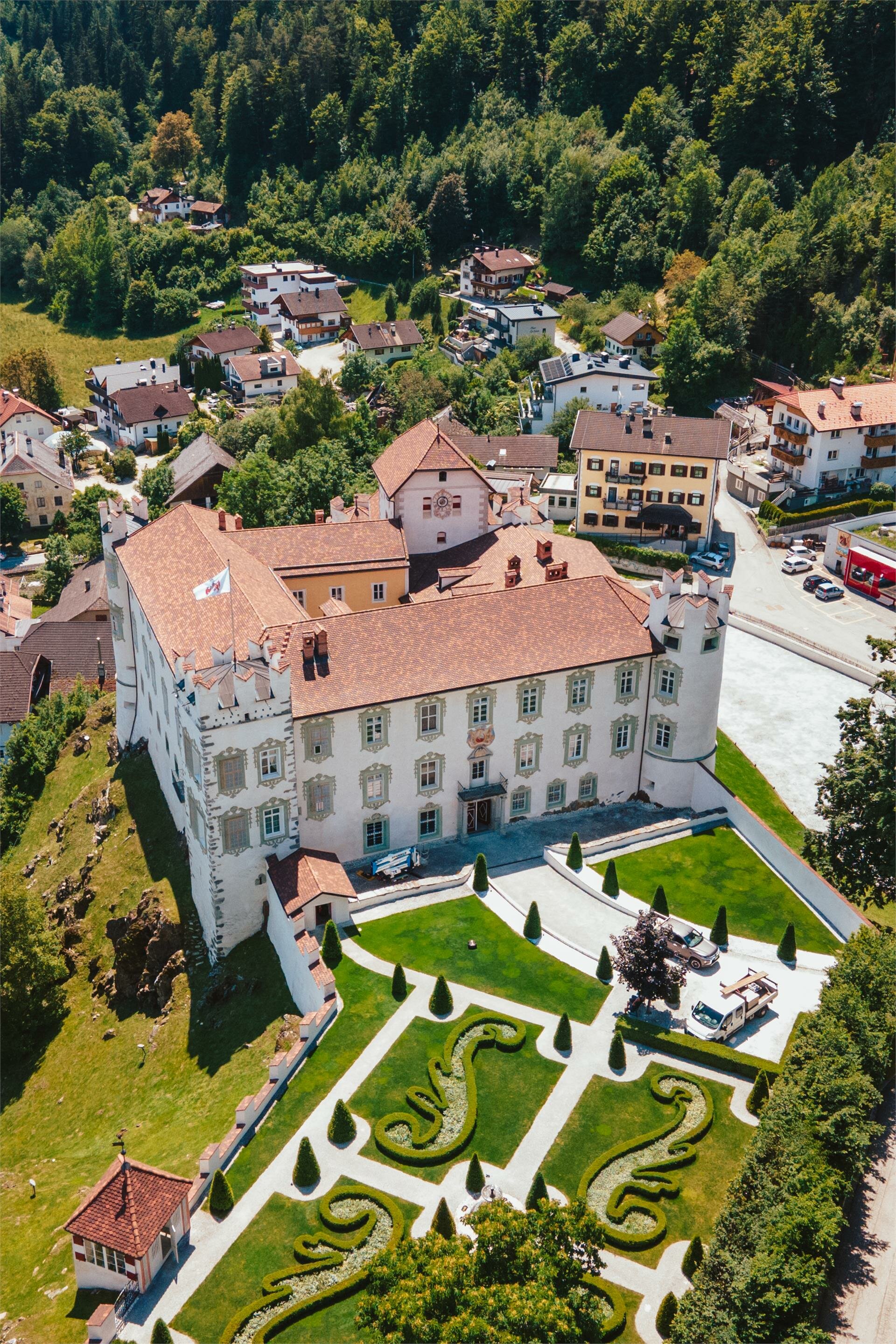 Castel Casteldarne era sede dei signori di Casteldarne, che in seguito furono chiamati Künigl. La prima costruzione risale al XIII° secolo. Nel XVI° secolo il castello fu terminato e ampliato tramite un cortile con arcate. Verso il 1732 fu trasformato in un castello barocco. Da notare la grande sala e la camera a bow window con soffitto a cassettoni, rivestimento in legno e dipinti sul soffitto, cosi come la cappella del castello. Il castello non è aperto per il pubblico.